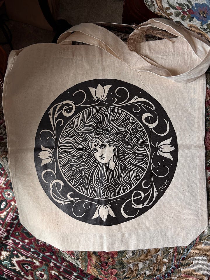 Next, I’ve made four new totes, also printed locally by Sonic Bark Vinyl Co. Please excuse the fold lines in the images, I haven’t had time to professionally photograph the totes and wanted to get them to you as soon as I could! This time, I’ve created a black tote, which I’m so excited about (I’ve already snagged one for myself).